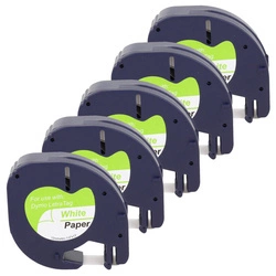 5 taśm zamiennych 59421 do drukarek etykiet Dymo LetraTag 12mm x 4m biała czarny nadruk
